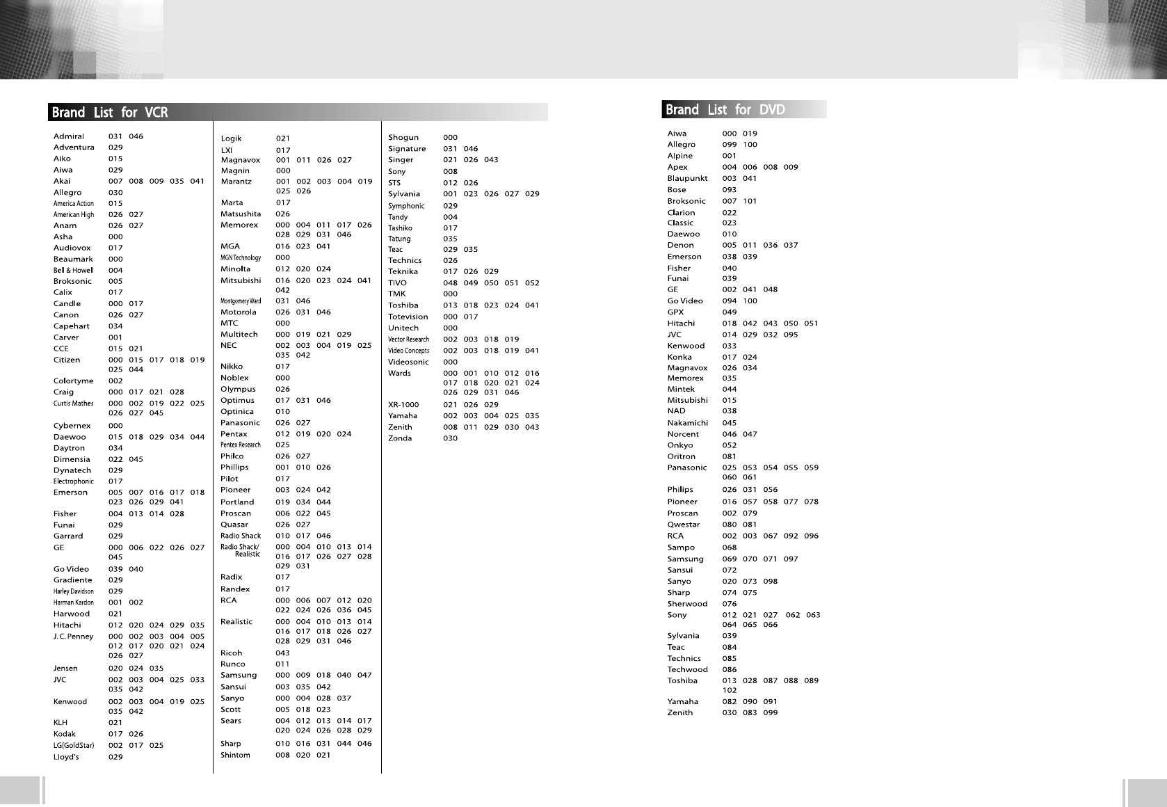 Brand List for TV